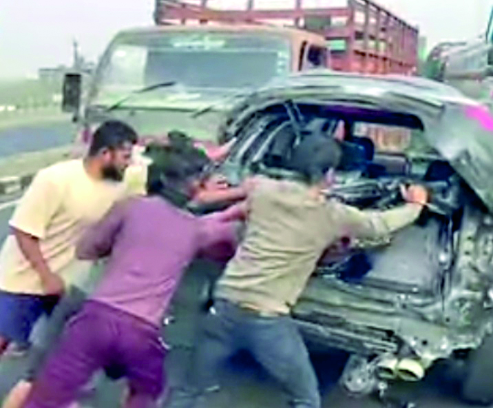 વલસાડ હાઈવે ઉપર ગુંદલાવ બ્રિજ ઉપર ત્રણ વાહનો વચ્‍ચે વિચિત્ર અકસ્‍માત સર્જાયો