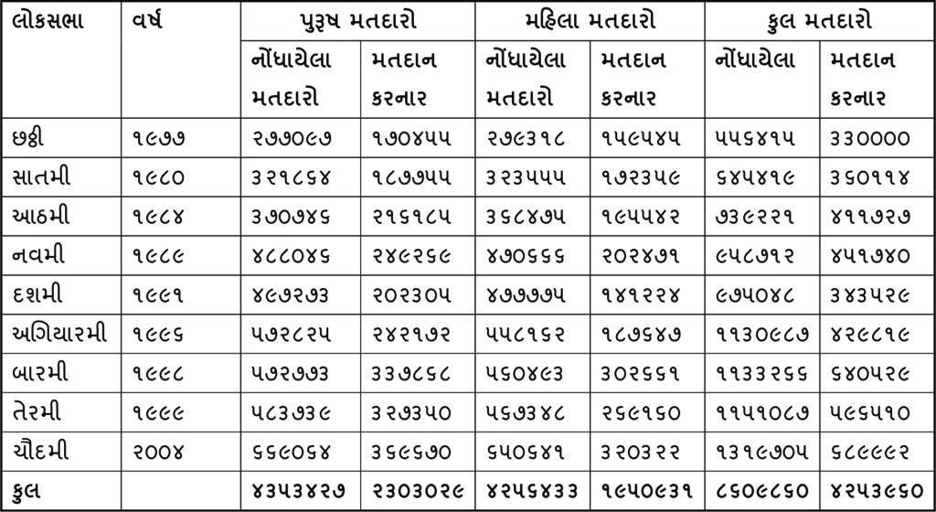 વર્ષ 1991માં મહિલા મતદારોએ જ્યારે 1977માં પુરૂષ મતદારોએ સૌથી ઓછું મતદાન કર્યું