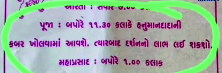 વાપી, તા.22: વલસાડ નજીક આવેલ રાબડા ગામે ચેતન બાપુ નામનો અભણ બાપુ દરગાહ ચલાવી રહ્યો છે. બાપુએ હનુમાન જયંતિ ઉજવવાની બહાર પાડેલી જાહેર પત્રિકામાં હનુમાન દાદાની કબર ખોલવામાં આવશે. દર્શન કરવા પધારવાના આમંત્રણ જોગ પત્રિકાને લઈ સમસ્ત હિંદુ સમાજની લાગણી દુબાઈ હતી. મામલો વધુ વણશે તે પહેલા વલસાડ પોલીસ ચેતન બાપુને પોલીસસ્ટેશન ઊંચકી લાવી હતી. હિંદુ સંગઠનના કાર્યકરો પોલીસ સ્ટેશન દોડી ગયા હતા.