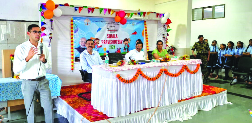 દમણવાડાની બાળગંગાધર તિલક શાળામાં યોજાયો પ્રવેશોત્‍સવ શિક્ષકોને એક ચિનગારી બની વિદ્યાર્થીઓની સુષુપ્ત શક્‍તિ ખિલવવા તણખો બનવા ડેપ્‍યુટી કલેક્‍ટર રાહુલ દેવ બુરાની સલાહ: શાળામાં ટોપ રહેલા બાળકોને સન્‍માનિત કરાયા
