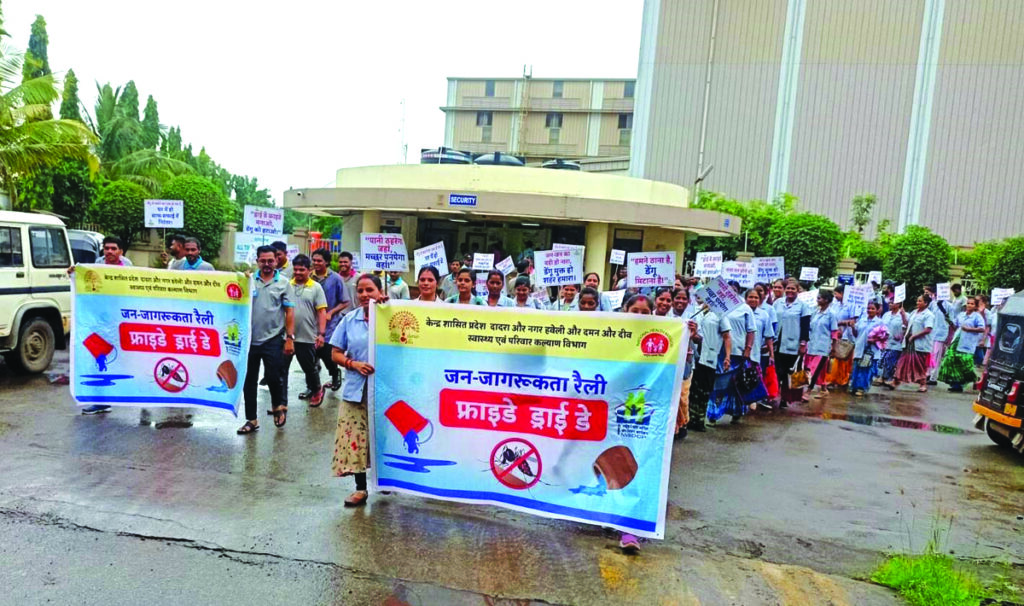 સેલવાસ, તા.27 : વરસાદની ઋતુમાં વધતી ડેન્ગ્યુની બીમારીને અટકાવવા માટે આરોગ્ય વિભાગે ડેન્ગ્યુ રોધી અંતર્ગત ‘ફ્રાઈડે ડ્રાય ડે’ અભિયાન ચલાવવામાં આવી રહ્યું છે. જેના માધ્યમથી પ્રદેશના દરેક ગામોમાં મચ્છરોના પ્રજનન સ્થળોને નષ્ટ કરવાનું લક્ષ્ય રાખવામાં આવ્યું હતું. આ પહેલનો ઉદ્દેશ્ય છેઘરની આજુબાજુની જગ્યાઓમાં જમા થયેલ સાફ પાણીને હટાવી અને ઘરની અંદરના પાણીને બદલવું જેના કારણે ડેન્ગ્યુ મચ્છરના લાર્વા નષ્ટ થાય અને આ બીમારીને ફેલાતા રોકી શકાય.