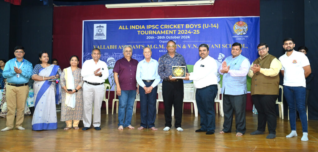 વાપી, તા.27: કિલ્લા-પારડીની વલ્લભ આશ્રમ એમ.જી.એમ. અમીન એન્ડ વી.એન. સવાણી સ્કૂલમાં તા.20 થી 26 ઓક્ટોબર 2024ના રોજ ઓલ ઈન્ડિયા લેવલની આઈપીએસસી યુ-14 બોયસ ક્રિકેટ ટુર્નામેન્ટનું આયોજન કરવામાં આવ્યું હતું. જેમાં વલ્લભ આશ્રમ સહિત દેશભરની કુલ 21 ટીમોએ ભાગ લીધો હતો. તા.20 ઓક્ટોબરના રોજ પારડી પોલીસ સ્ટેશનના પી.એસ.આઈ. શ્રી સંદીપ સસલડે, ડેલી કોલેજ ઈન્દોરના ઓબ્ઝર્વર શ્રી સંજય ઠક્કર, શાળા મેનેજમેન્ટના સભ્યો શ્રી બાબુભાઈ, શ્રી દિનેશભાઈ, શ્રી કુશ સાકરિયા, વલ્લભ આશ્રમ સ્કૂલના આચાર્ય શ્રી અનુરાદ શર્માની ઉપસ્થિતિમાં ઓપનિંગ સેરેમની કરવામાં આવી હતી. જેમાં પીએસઆઈ શ્રી સંદિપ સસલડે તથા ઓબ્ઝર્વર શ્રી સંજયભાઈ ઠક્કરના હસ્તે સંયુક્ત રીતે ધ્વજારોહણ કર્યા બાદ ટુર્નામેન્ટ ઓપન જાહેર કરવામાં આવી હતી. જેમાં દરેક ટીમોએ એકસાથે શપથ ગ્રહણ કરી ખેલદિલી વ્યક્ત કરી હતી.