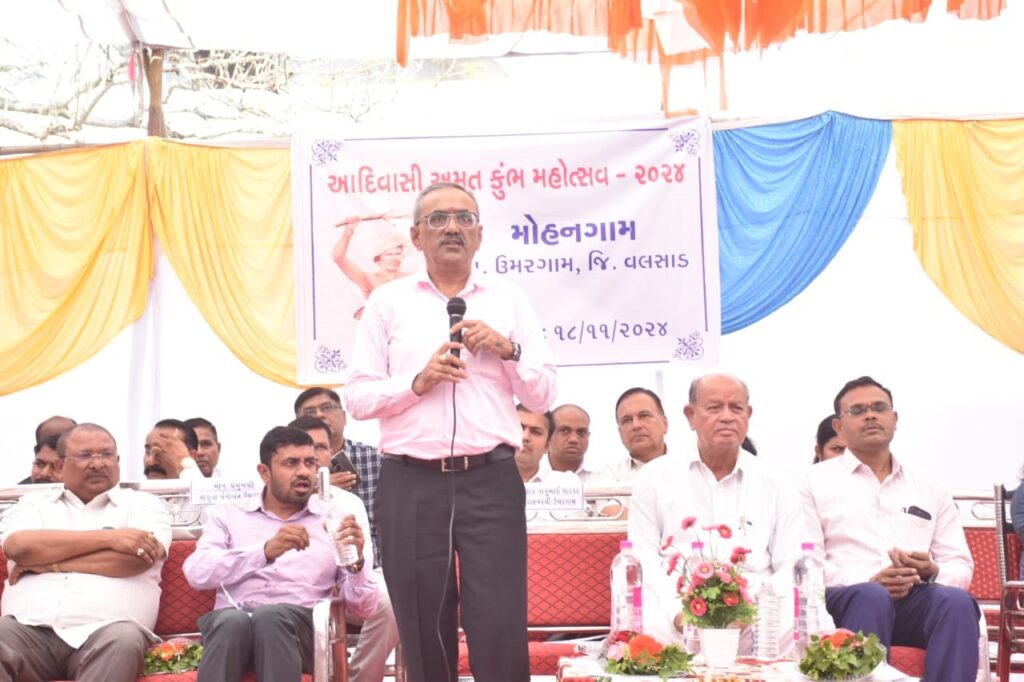 આ પ્રસંગે ઉમરગામના ધારાસભ્યશ્રી રમણલાલ પાટકરે પોતાના ઉદ્બોધનમાં ઉમરગામ તાલુકામાં વારલી, ધોડી અને હળપતિ સમાજની બહુધા વસ્તી હોવાનું જણાવી આદિવાસી સમાજને કયા કયા લાભો મળે છે અને કોણે કઈ કઈ યોજનાના લાભો લીધા છે તે અંગે માહિતી મેળવી હતી. ઉપસ્થિત આદિવાસી સમાજના જે બાંધવોએ સરકારની યોજનાના લાભ ન લીધા હોય તો તેમને પણ સરકારની યોજનાના લાભ લેવા માટે આગ્રહ કર્યો હતો. વધુમાં શ્રી પાટકરે તેમના ઉદ્બોધનમાં જણાવ્યું કે, રાજ્યના 11 આદિવાસી જિલ્લાના 23 તાલુકાના 5800 ગામોમાં આદિવાસી અમૃત કુંભ મહોત્સવ રથ યાત્રા પરિભ્રમણ કરી સરકારની યોજનાના લાભો લેવા માટે સૌને જાગૃત કરશે ત્યારે આપણી પોતાની પણ જવાબદારી બને કે, આપણે પણ જાગૃત થઈ સરકારની વિવિધ યોજનાનો લાભ લઈ આત્મનિર્ભર બનીએ, વડાપ્રધાનશ્રીના વિકસિત ભારત 2047ના વિઝનની વિકાસ યાત્રામાં સામેલ થઈએ. તેમણે ગામના સરપંચને પૂછ્યું હતું કે, તમારા ગામમાં કેટલા લોકોએ આવાસ યોજનાનો લાભ લીધો છે? જેના જવાબમાંસરપંચે 300 લાભાર્થીઓએ આવાસ યોજનાનો લાભ મેળવ્યો હોવાનું જણાવ્યું હતું. જેના પરથી અંદાજો લગાવી શકાય છે કે, સરકાર આદિવાસી સમાજના વિકાસ અને કલ્યાણ માટે મિશન મોડમાં કામગીરી કરી રહી છે. જે જમીન વિહોણા છે તેમને વડાપ્રધાનશ્રીએ જમીન આપી તેઓનું કલ્યાણ કર્યુ છે. તેમણે સરકારની મુદ્રા યોજના, વ્હાલી દીકરી યોજના, આયુષ્યમાન કાર્ડ યોજના, વિધવા પેન્શન યોજના, ખેડૂતો માટે વાડ કરવાની યોજના સહિત અનેકવિધ યોજનાનો લાભ લેવા જણાવ્યું હતું.