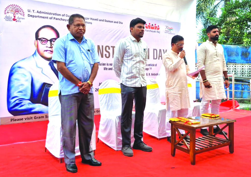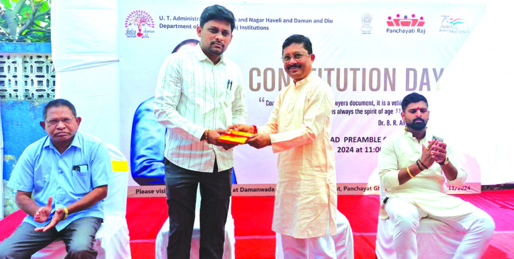 દમણ, તા.27 : 75મા સંવિધાન દિવસના ઉપલક્ષમાં દમણવાડા ગ્રામ પંચાયત દ્વારા એક વિશેષ ગ્રામસભાનું આયોજન કર્યું હતું. જેમાં મુખ્ય અતિથિ તરીકે દમણના બ્લોક ડેવલપમેન્ટ ઓફિસર શ્રી મિહિર જોષી ઉપસ્થિત રહ્યા હતા.