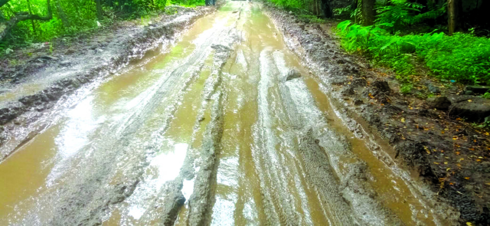 સેલવાસ દમણગંગા નદીના કિનારેથી નરોલી સ્‍મશાન ભૂમી તરફ જતો રસ્‍તો જર્જરિત